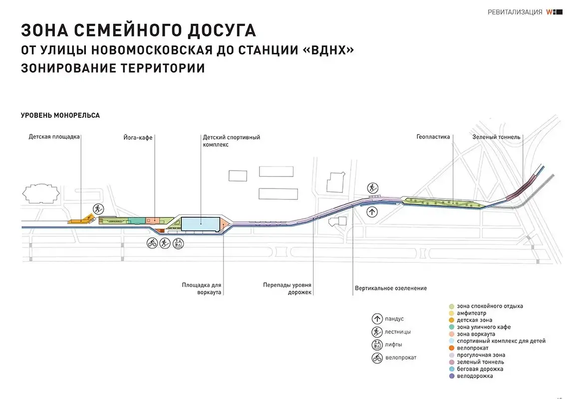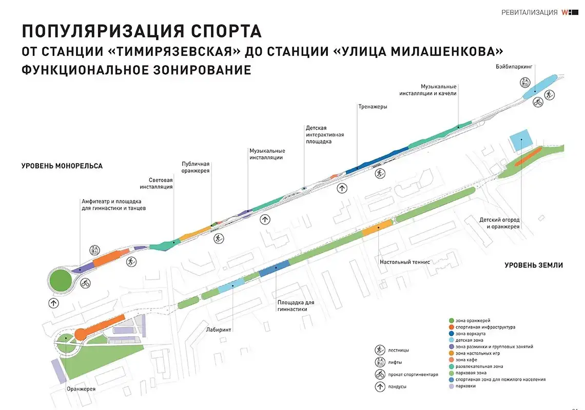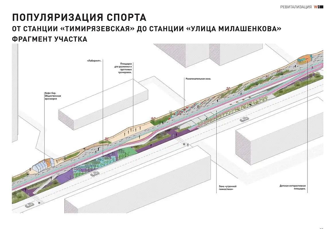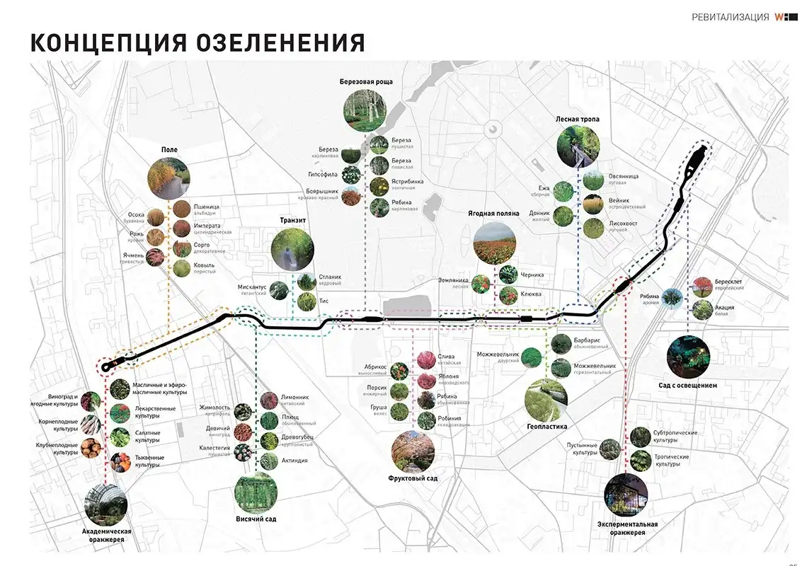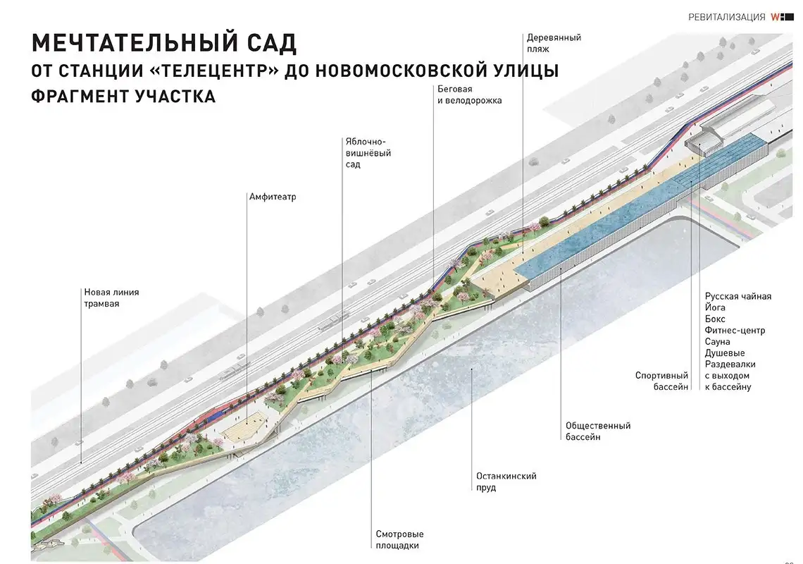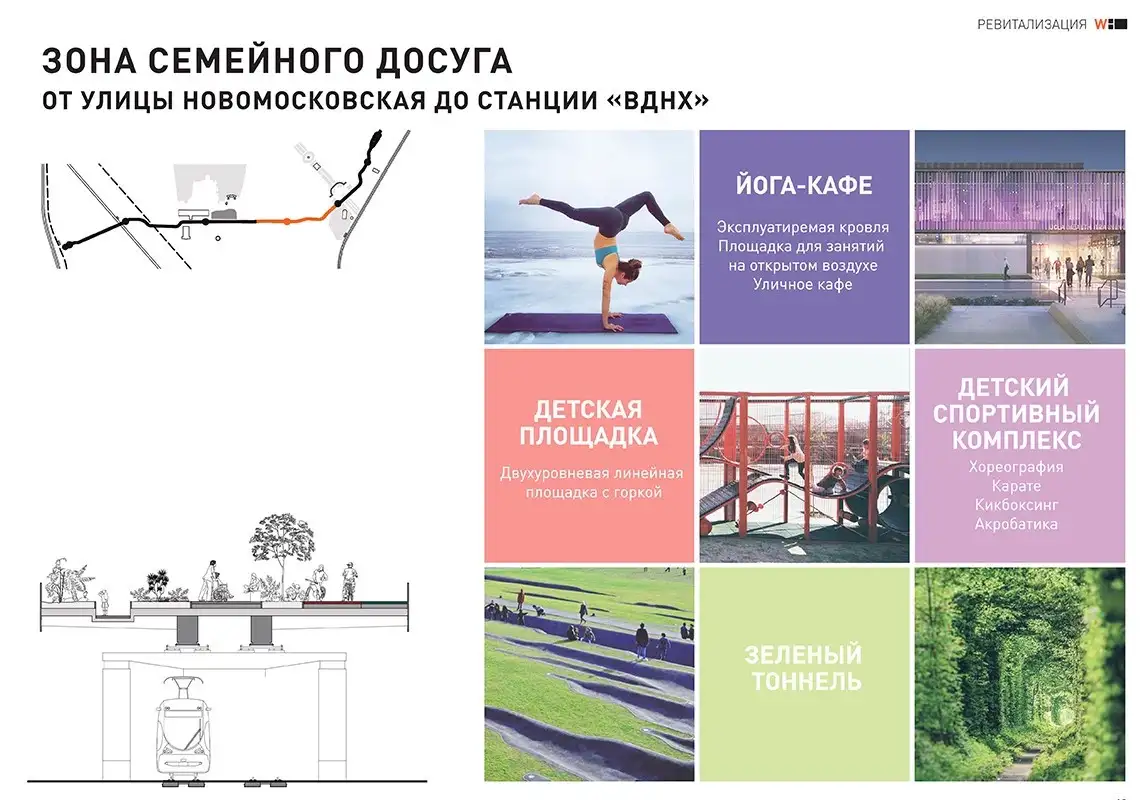 High Line в Нью-Йорке. Но полностью перенести этот опыт на нашу площадку невозможно. Вокруг очень много существующих парков хорошего уровня. Это ВДНХ с большим разнообразием рекреационных предложений, очень красивый исторический парк «Останкино», Тимирязевский лес. Есть все типы парковых рекреаций.